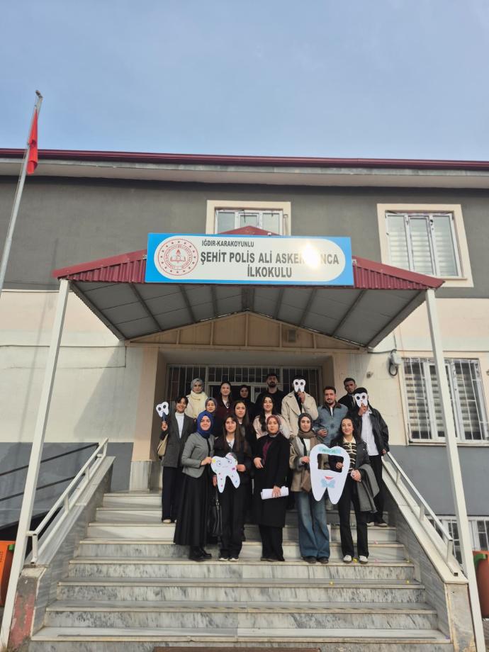 Ağız ve Diş Sağlığı Öğrenci Topluluğu, Şehit Polis Ali Asker Gonca İlkokulunda 16.12.2025 tarihinde, Dr. Öğr. Üyesi Büşra Merve SARITAŞ'ın katılımıyla, öğrencilere "Ağız ve Diş Sağlığı Hakkında Bilgilendirme ve Diş Fırçalama" etkinliği düzenlemiştir. Topluluk üyesi öğrencilerimiz çocuklara küçük hediyeler dağıtıp diş fırçalamanın önemini anlatan etkinlikler yaptırmıştır.